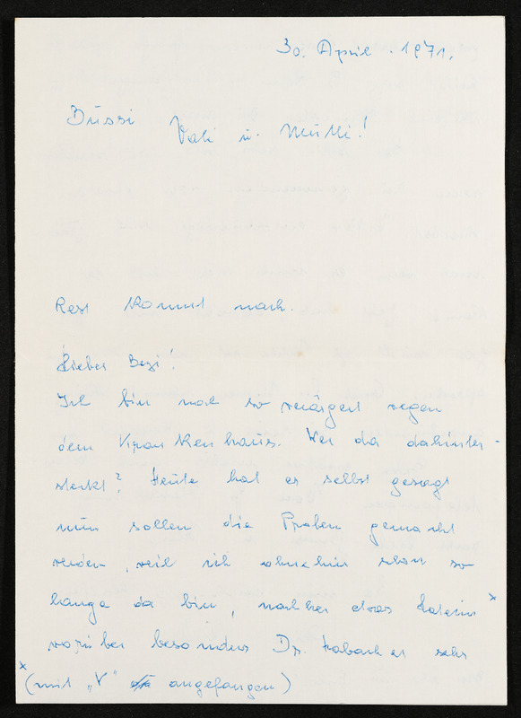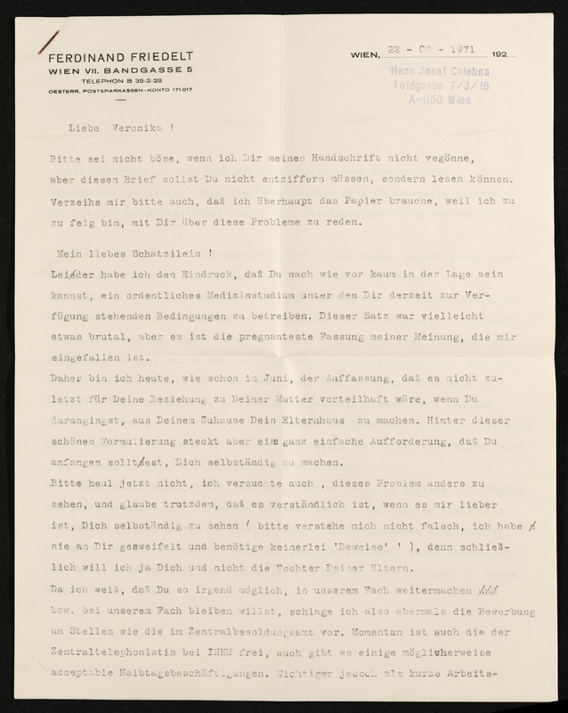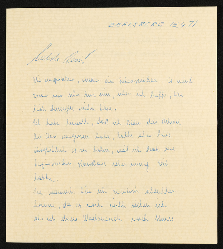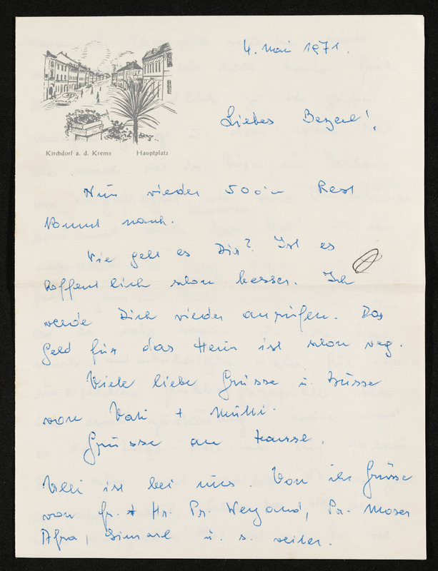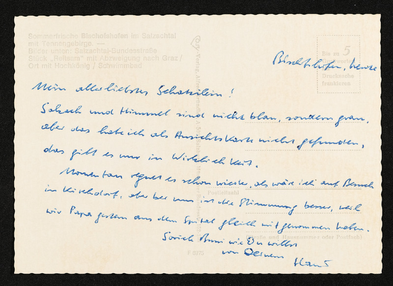 Ansichtskarte "Grüße aus Bischofshofen". Die Ansichtskarte liegt dem Brief von Hansi an Veronika Erntl bei. Datum des Poststempels am Briefkuvert: 11. Juni 1971