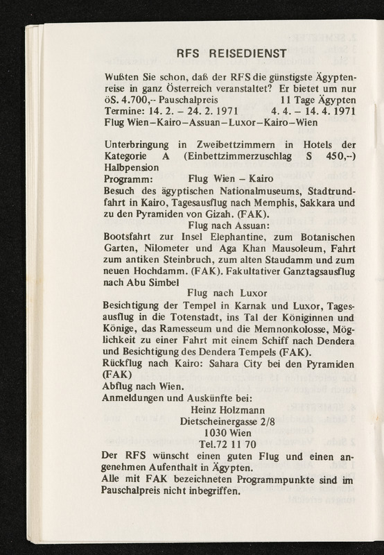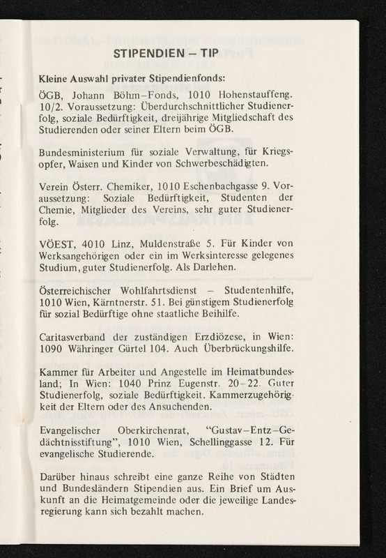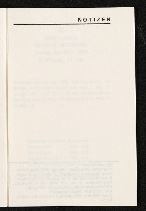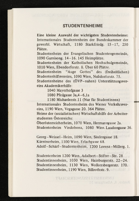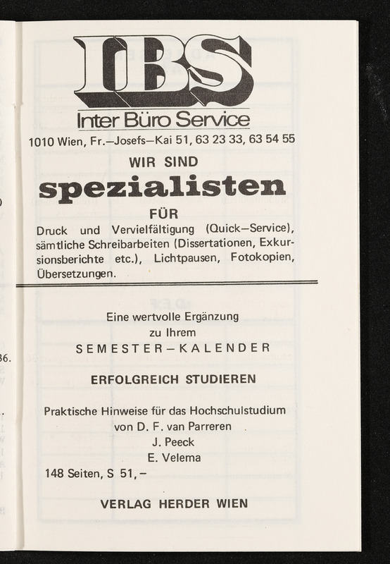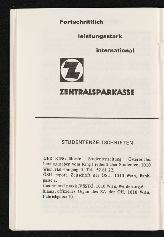 Studentenkalender Sommersemester 1971, Umschlagseite rückwärts innen
