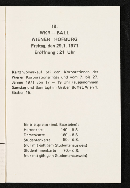 Studentenkalender Sommersemester 1971, Umschlagseite rückwärts außen