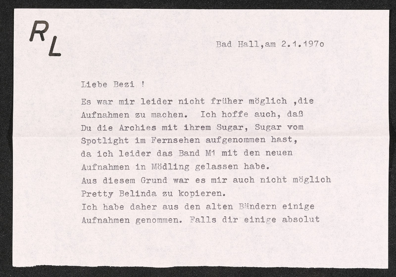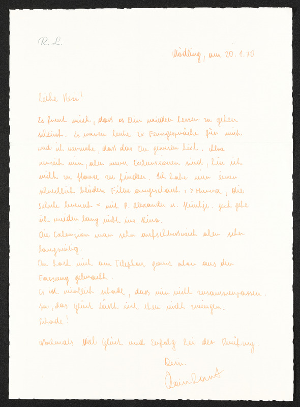 Brief von Rainhart Lichtenegger an Veronika Erntl, 20. Jänner 1970