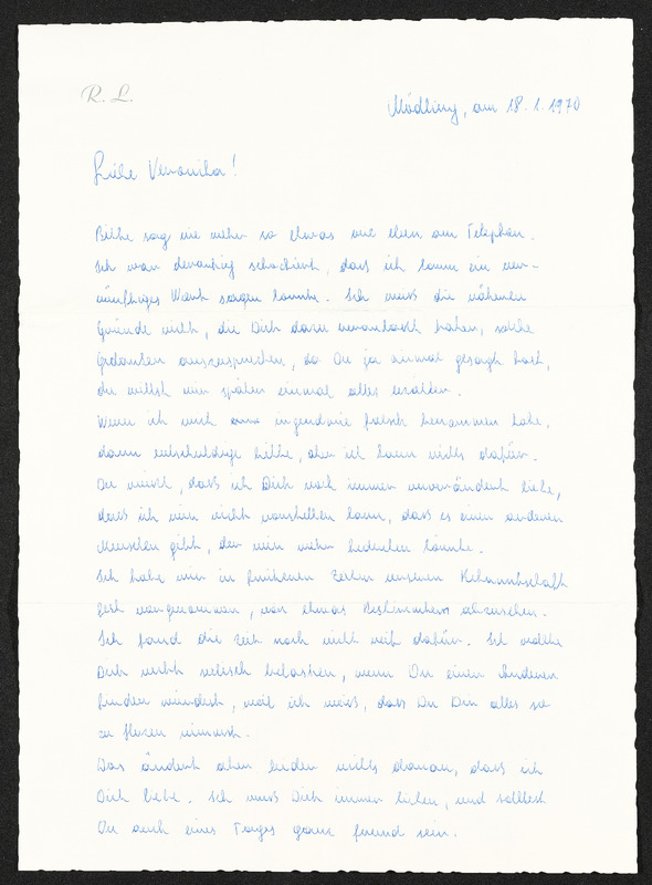 Brief von Rainhart Lichtenegger an Veronika Erntl, 18. Jänner 1970