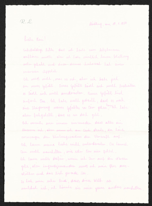 Brief von Rainhart Lichtenegger an Veronika Erntl, 19. Jänner 1970