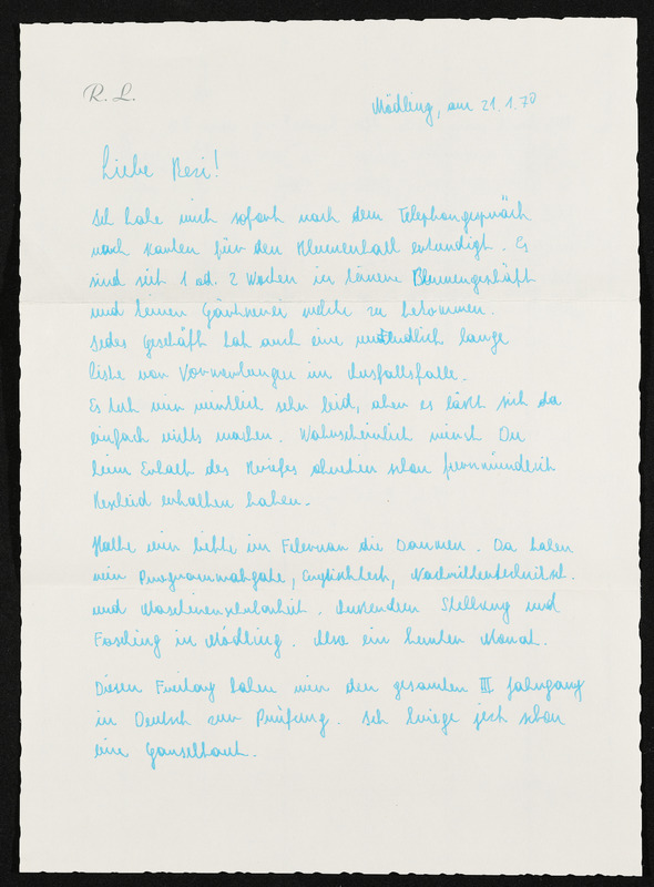 Brief von Rainhart Lichtenegger an Veronika Erntl, 21. Jänner 1970