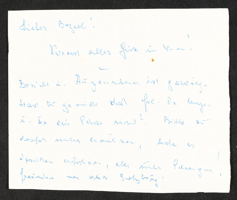 Vorderseite des Briefes an Veronika Erntl von ihren Eltern. Inhalt ist zum Teil persönlicher Natur, zum Teil berichten sie über einen Herrn und eine Frau Dr. Mayer und einen Bericht.