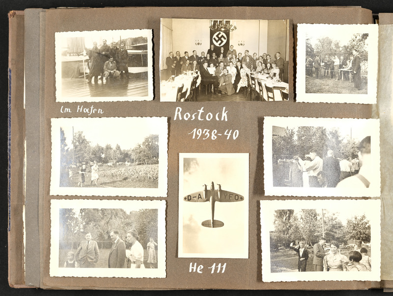 privates Fotoalbum mit Familienfotos, Freizeitfotos, Urlaubsfotos und Fotos aus dem Einsatz im 2. Weltkrieg, Fotos aus Rostock von 1938 bis 1940, Heinkel-Flugzeug He 111