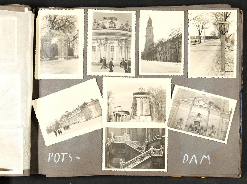 privates Fotoalbum mit Familienfotos, Freizeitfotos, Urlaubsfotos und Fotos aus dem Einsatz im 2. Weltkrieg, Fotos aus Berlin: "Reichskanzlei im Bau", "Kaffee-Haus Vaterland", "UBahnbrücke", "SBahnstation", "Der erste Segen", ""Am Anhalterbahnhof", "Am Landweerkanal", "von oben"