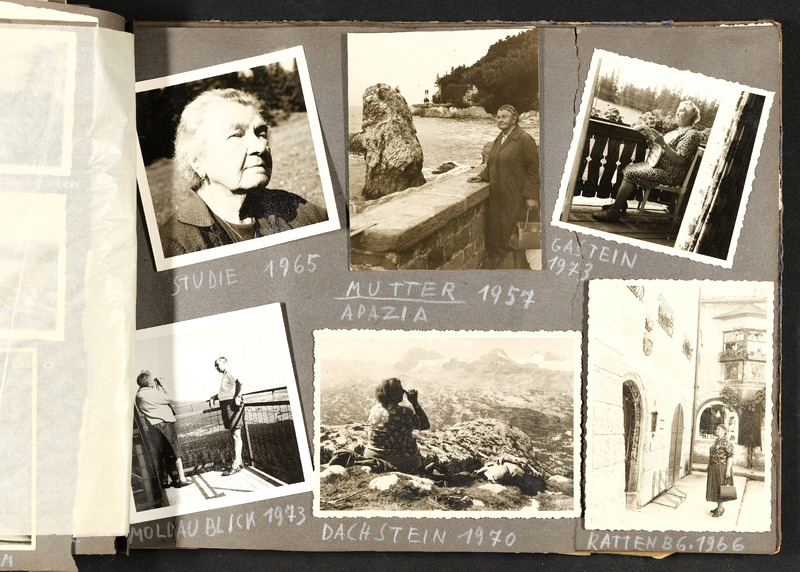 privates Fotoalbum mit Familienfotos, Freizeitfotos, Urlaubsfotos und Fotos aus dem Einsatz im 2. Weltkrieg, Fotos der Mutter: Studie 1965, Mutter (in) Apazia 1957, Gastein 1973, Moldaublick 1973, Dachstein 1970, Rattenberg 1966