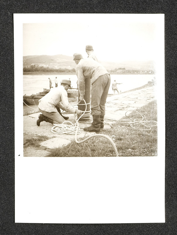 Flöße beim Anlegen auf der Donau