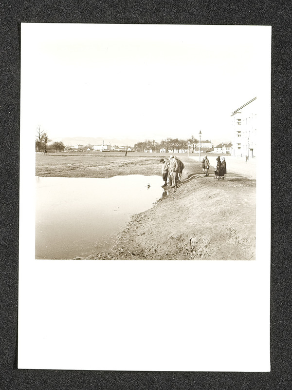 Menschengruppe bei einem Teich