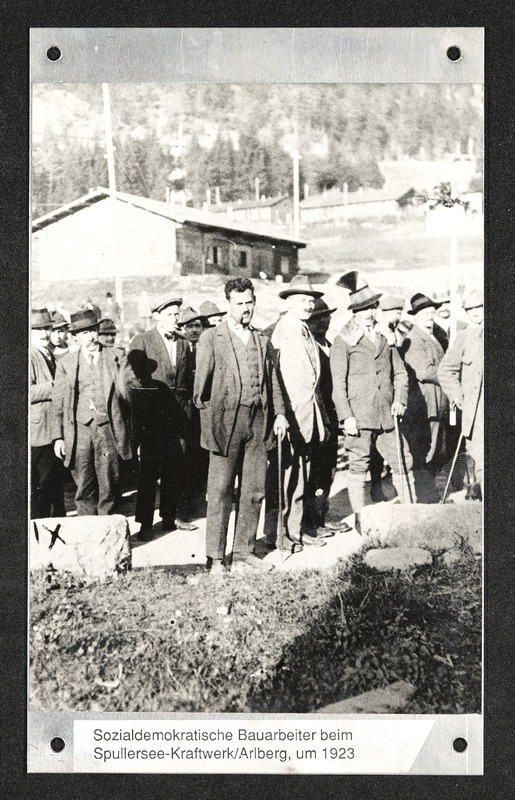 Sozialdemokratische Bauarbeiter beim Spullersee-Kraftwerk/Arlberg, um 1923