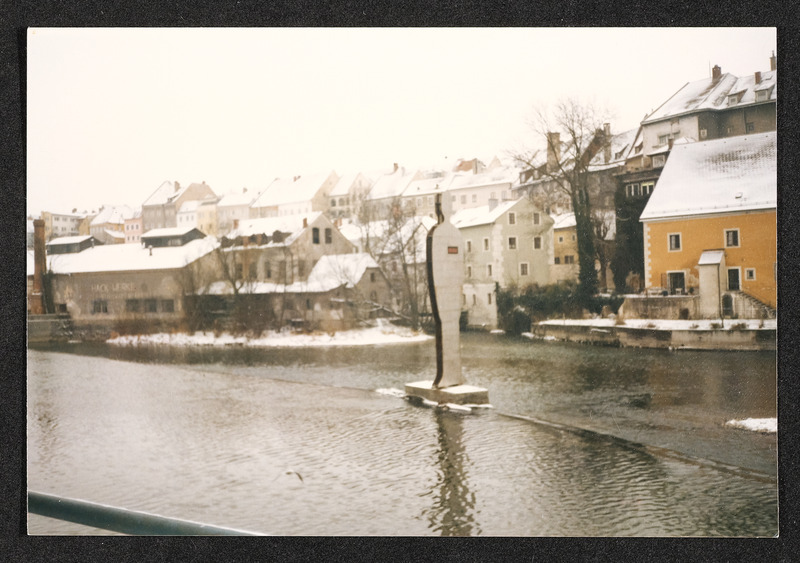 Statue auf der Steyr - im Hintergrund Hackwerke