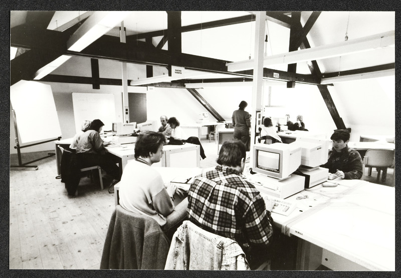 Mitarbeiterinnen des Vereins Museum Arbeitswelt während der Aufbauphase des Museums Industrielle Arbeitswelt Steyr