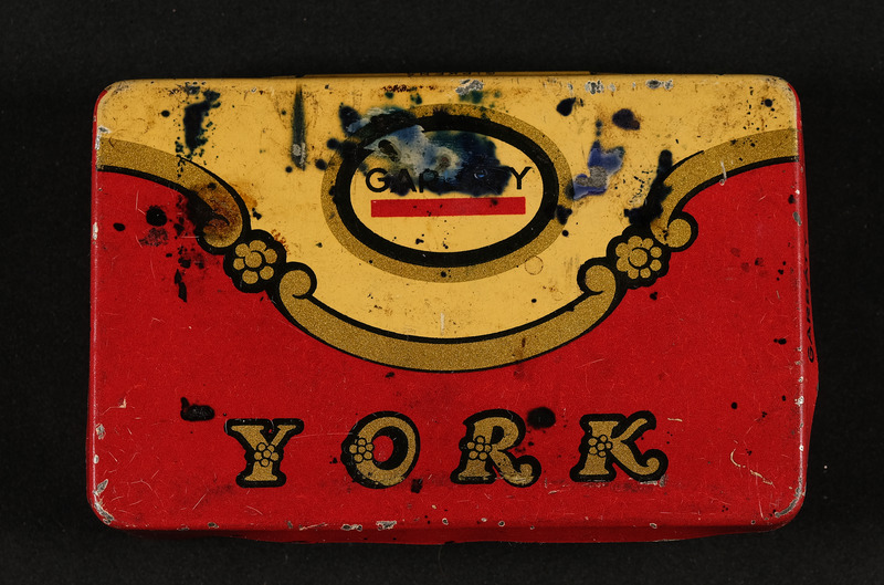 Zigarettendose aus Blech, Garbaty York, Außenansicht, Innenansicht