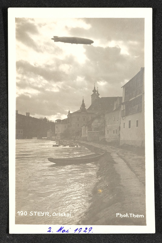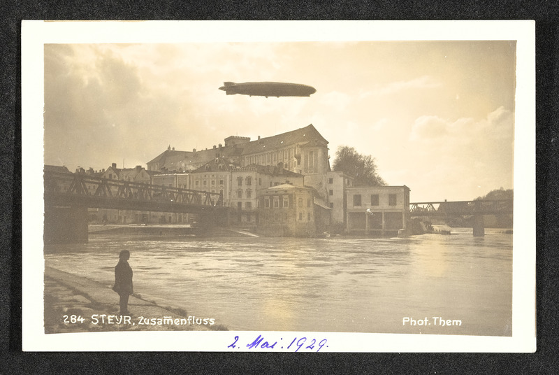 Zeppelin über dem Ortskai in Steyr am 2. Mai 1929