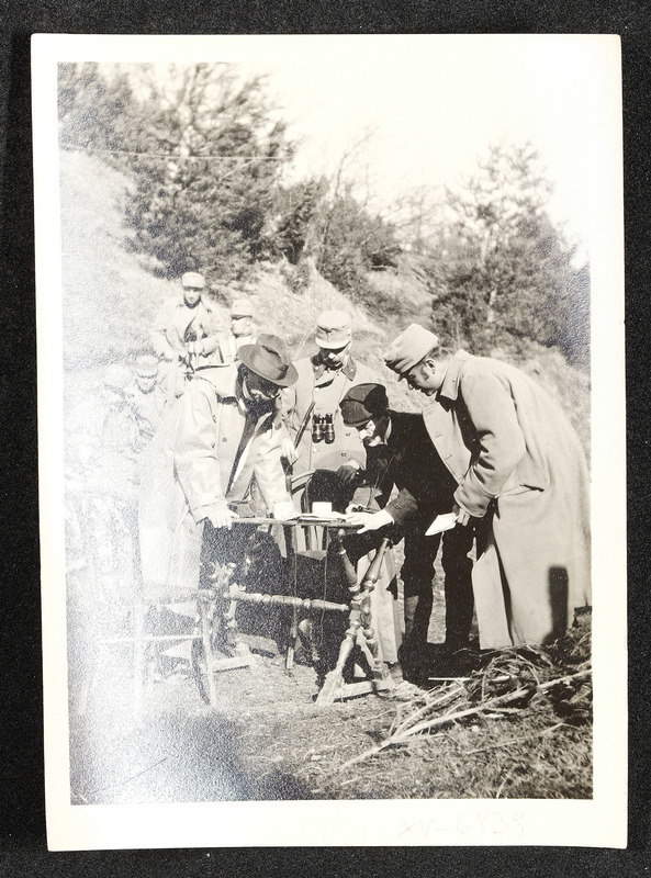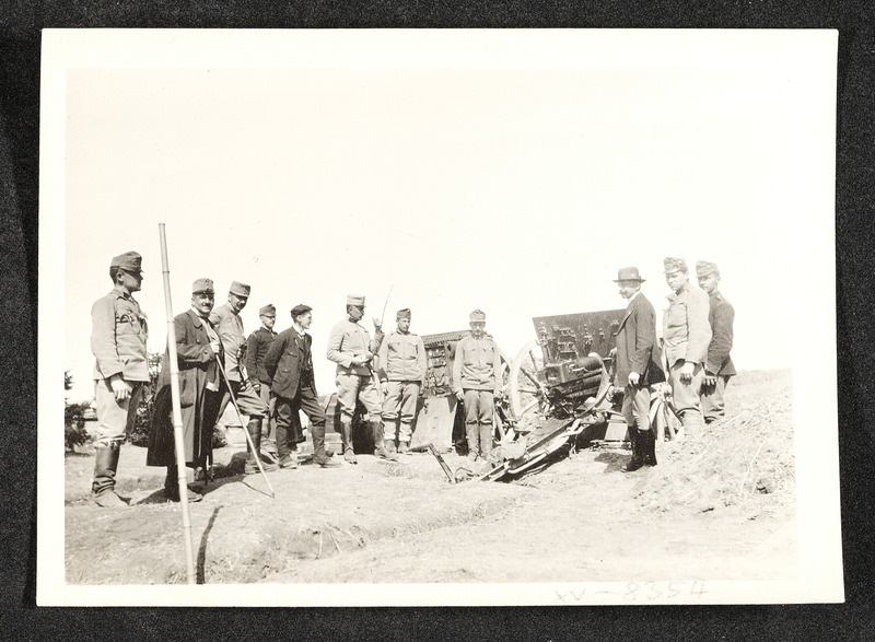 Frontbesuch des Steyrer Bürgermeisters Julius Gschaider an der russischen Front. Kommandant des Feldkanonenregiments 42, Oberstleutnant Ferdinand Svoboda